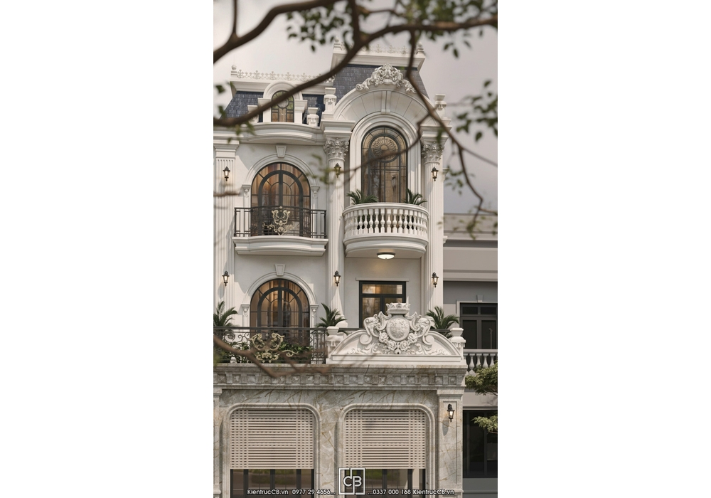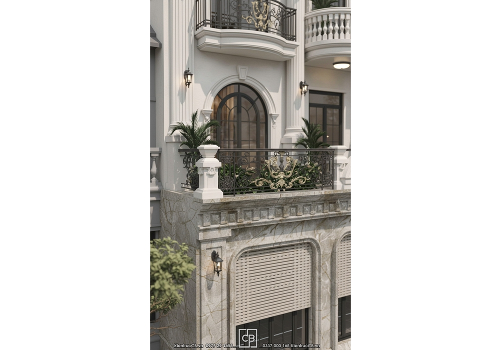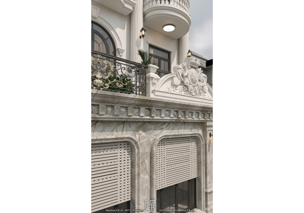 => Tổng thể mặt tiền mang vẻ đẹp sang trọng – tinh tế – không lỗi thời, giúp ngôi nhà của bạn mang dấu ấn tân cổ điển giữa lòng đô thị.