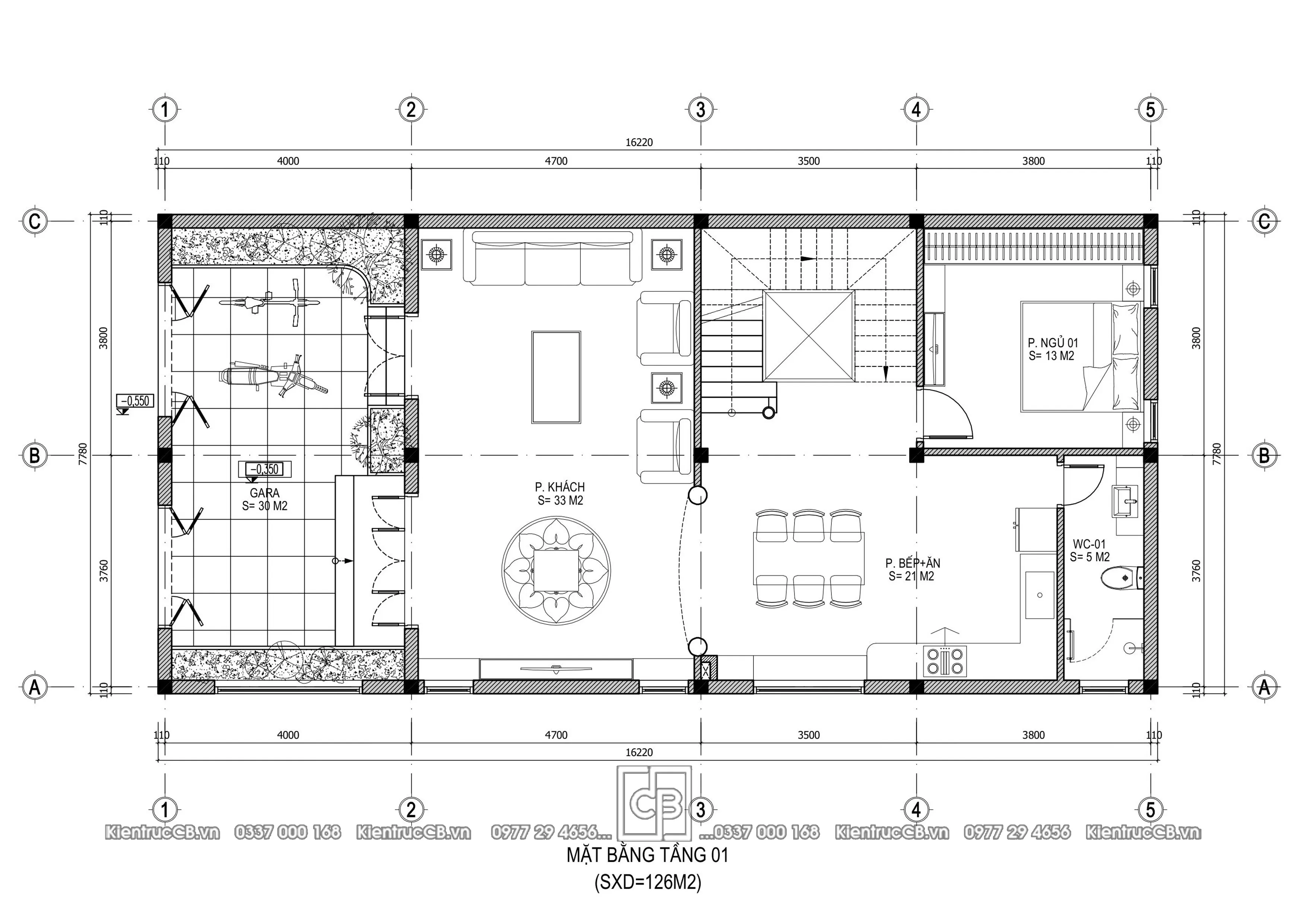 - Phòng khách (~33m²): thiết kế mở, kết nối trực tiếp với sảnh, tạo cảm giác thông thoáng