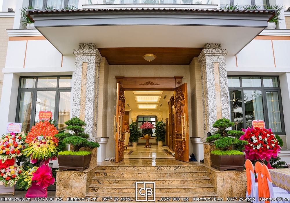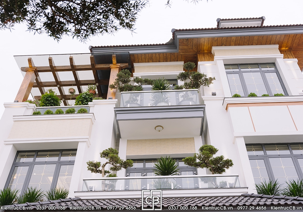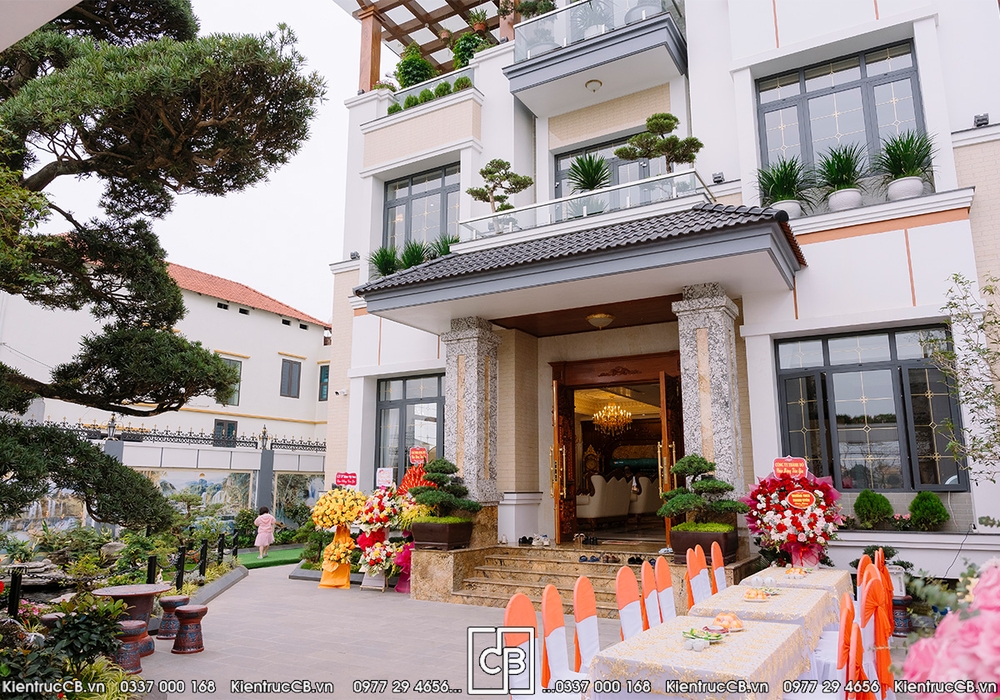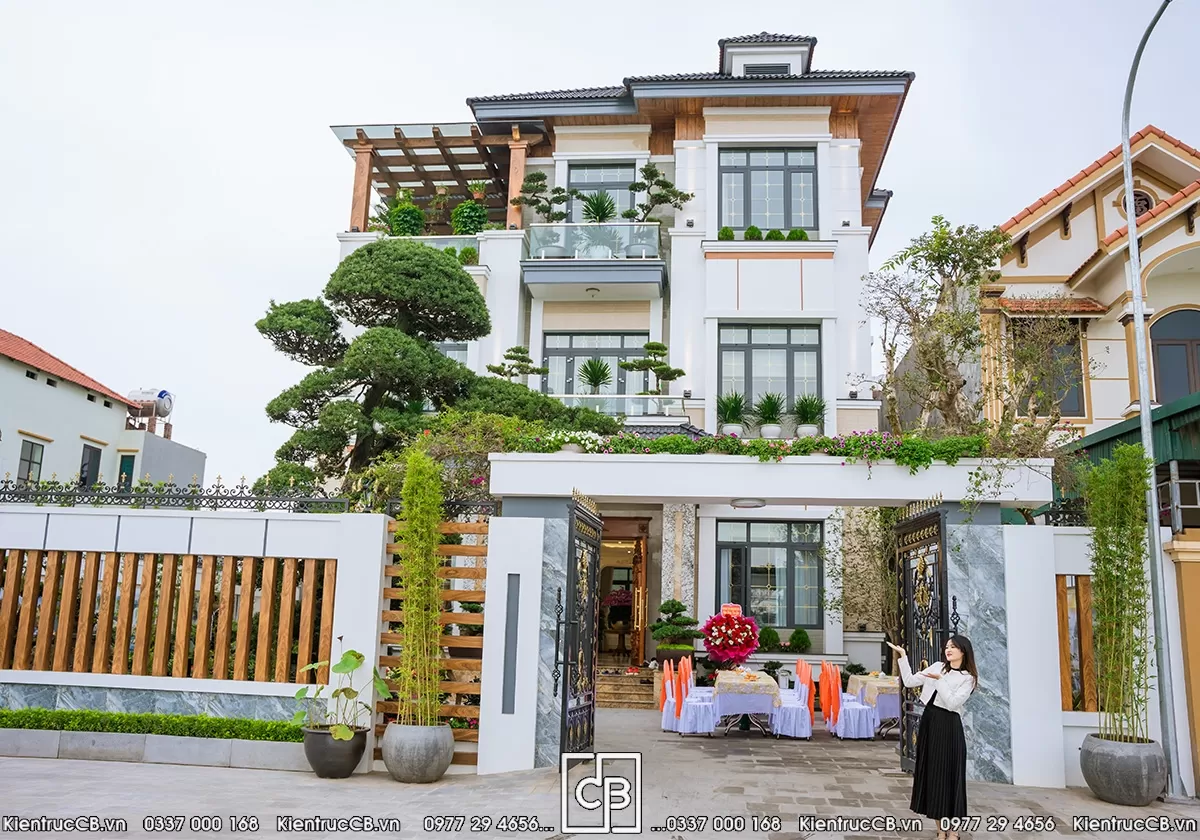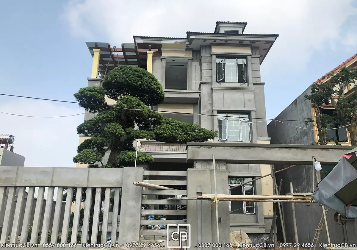 Sau khi hoàn tất phần thô, công trình bước vào giai đoạn hoàn thiện với các hạng mục như mặt tiền, hệ cửa, ban công, sân vườn và cảnh quan. Ngoại thất được xử lý hài hòa giữa hình khối kiến trúc hiện đại và mảng xanh, mang lại tổng thể sang trọng, thoáng đãng và bền vững theo thời gian.