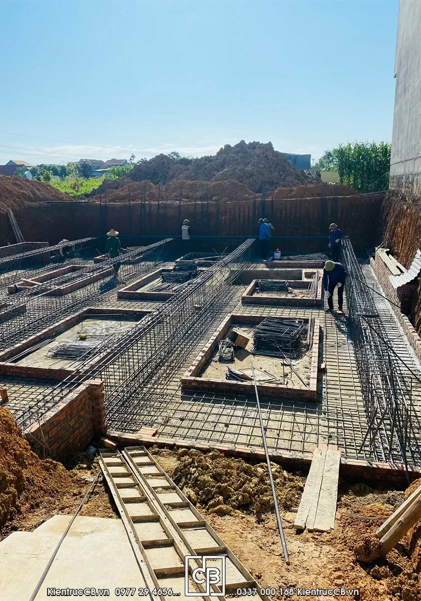 Ngay từ giai đoạn đầu, phần móng và kết cấu được triển khai đúng tiêu chuẩn kỹ thuật, đảm bảo khả năng chịu lực và độ bền lâu dài. Hệ khung bê tông cốt thép, sàn, tường bao được thi công chính xác theo bản vẽ, tạo tiền đề cho việc hoàn thiện kiến trúc và nội thất về sau.