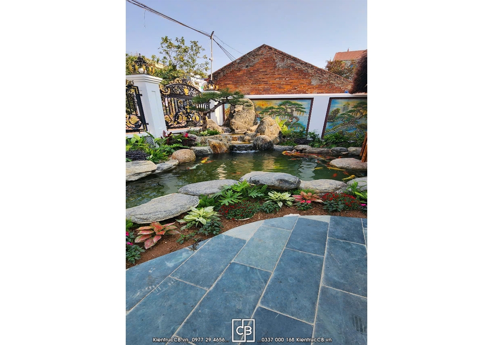 Sân chơi rộng rãi, có thể thiết kế tiểu cảnh, góc thư giãn hoặc khu vui chơi cho trẻ nhỏ.