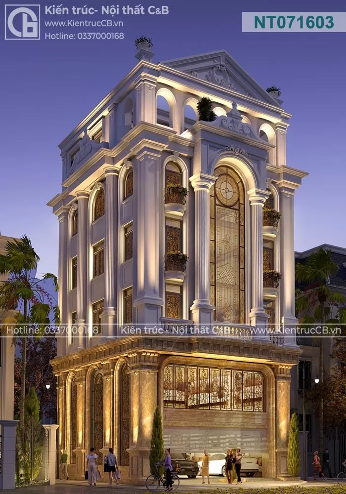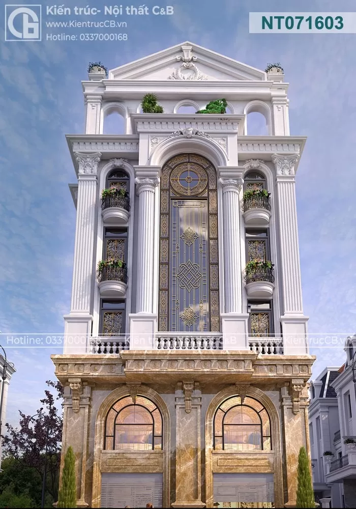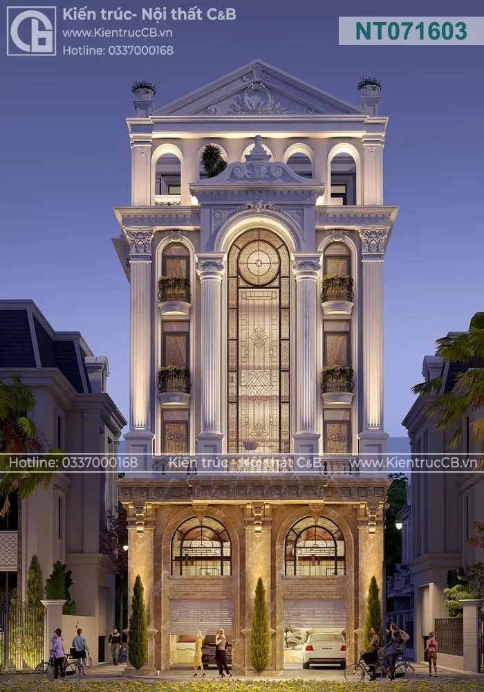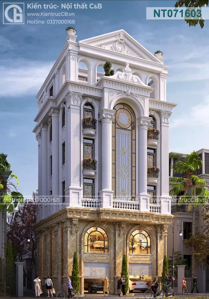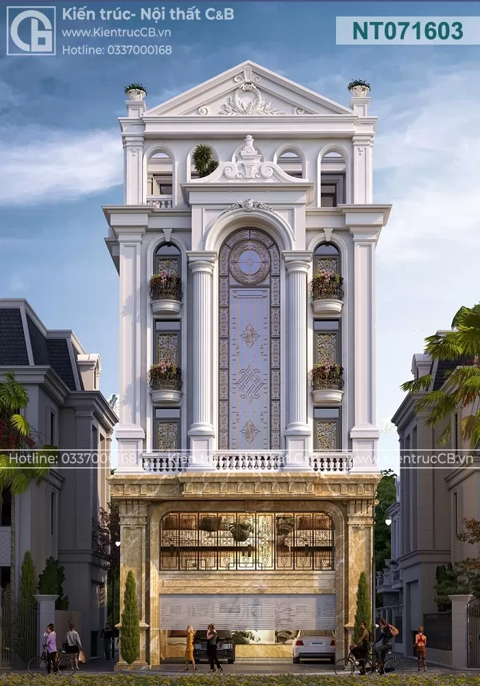 Chủ đầu tư của công trình này mong muốn sở hữu một không gian sống vừa mang đậm nét truyền thống, vừa đáp ứng được các yêu cầu hiện đại về công năng và thẩm mỹ. Mặt tiền công trình được thiết kế với hệ thống cột trụ đối xứng, tạo cảm giác bề thế và vững chắc. Các chi tiết hoa văn được chạm khắc tỉ mỉ, thể hiện sự tinh xảo trong từng đường nét. Nội thất bên trong được thiết kế theo phong cách tân cổ điển, kết hợp hài hòa giữa các đường nét cổ điển và các vật liệu hiện đại. Sử dụng gam màu trung tính như trắng, kem, nâu tạo nên không gian ấm cúng và sang trọng.
