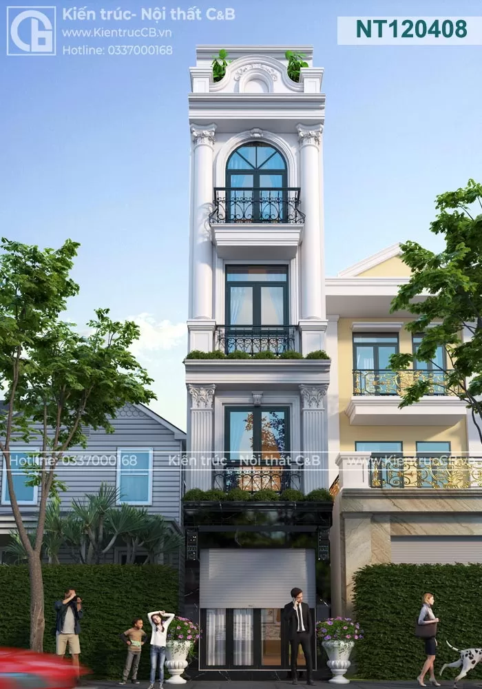 >>> Mẫu nhà ống đẹp 4 tầng phong cách tân cổ điển (NO042102)