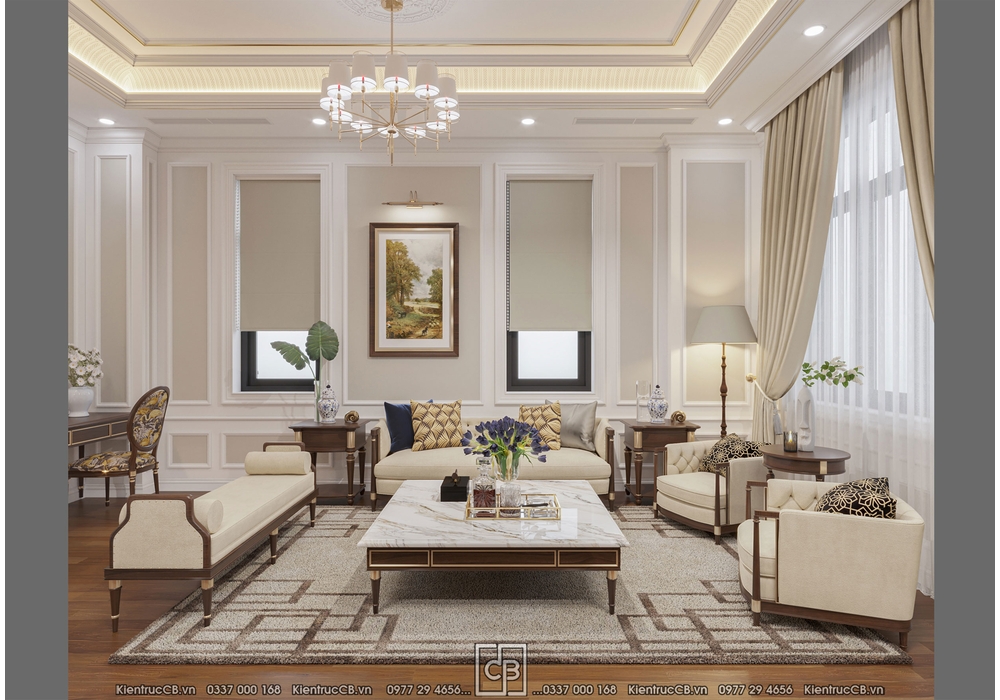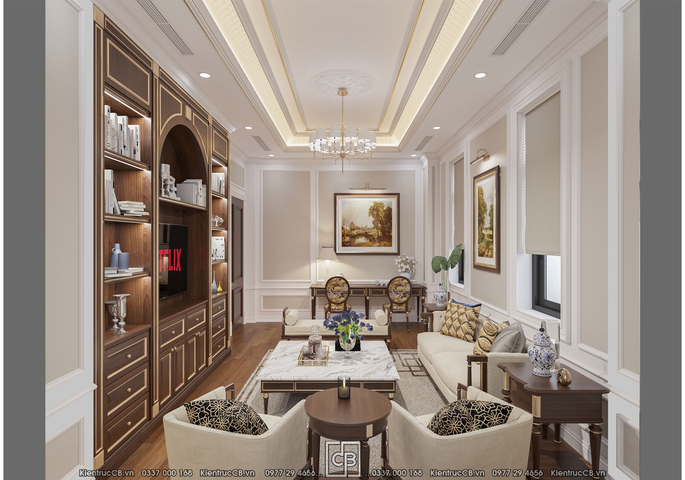 Gia chủ mong muốn một không gian sống đậm chất cổ điển, nhưng vẫn hiện đại và tiện nghi, đặc biệt là phòng khách phải là nơi cả gia đình quây quần, thư giãn.