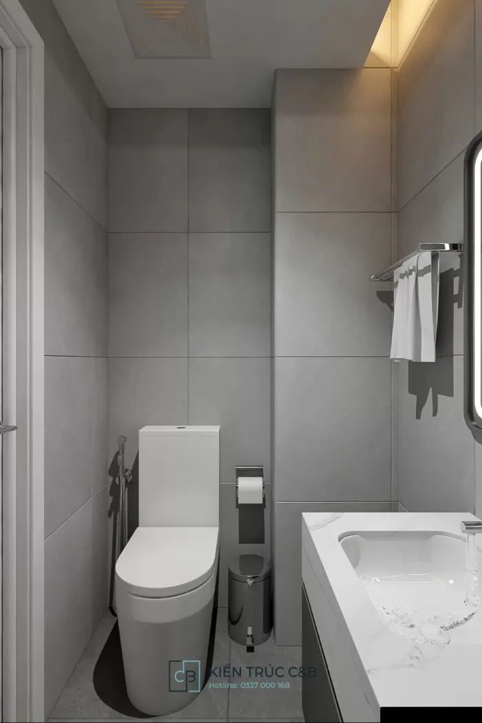 Không chỉ là nơi sinh hoạt, WC còn là không gian thư giãn sau một ngày dài. C&B chú trọng vào thiết kế tối giản nhưng đầy đủ công năng, sử dụng vật liệu cao cấp như đá tự nhiên, kính cường lực, gỗ chống ẩm để đảm bảo độ bền lâu dài.