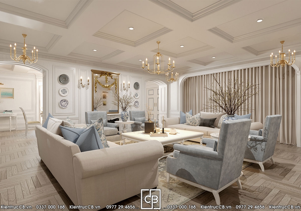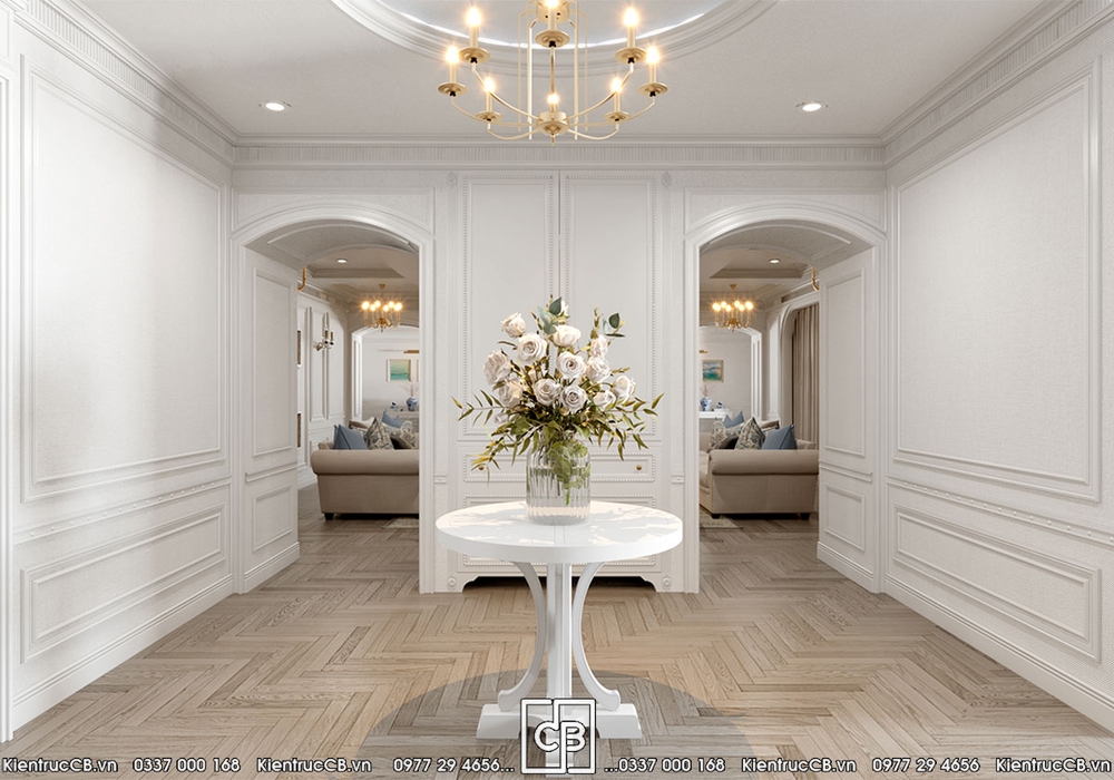 Thiết kế nội thất phong cách tân cổ điển nhẹ nhàng không tìm cách gây ấn tượng bằng sự phô trương, mà chinh phục người nhìn bằng sự tinh tế được tính toán kỹ lưỡng trong từng chi tiết. Từ tỷ lệ không gian, nhịp điệu phào chỉ cho đến cách lựa chọn màu sắc và ánh sáng, tất cả đều được tiết chế vừa đủ để tạo nên một tổng thể hài hòa, thanh lịch và bền vững theo thời gian.