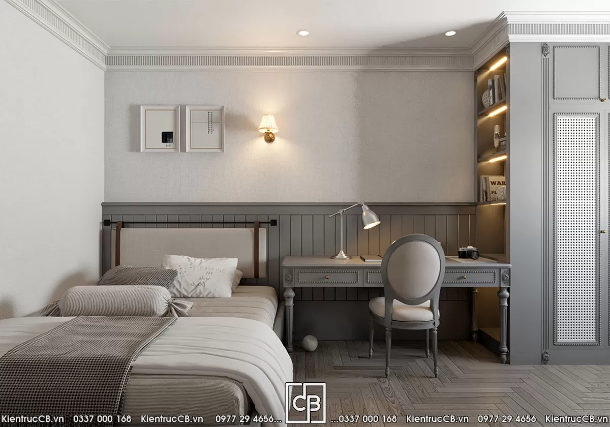 Một không gian sống đẹp không chỉ nằm ở hình thức, mà còn ở cảm giác thư thái mà nó mang lại mỗi ngày. Thiết kế phòng ngủ kết hợp góc làm việc dưới đây là sự giao thoa hài hòa giữa công năng, thẩm mỹ và cảm xúc – nơi nghỉ ngơi và sáng tạo cùng tồn tại trong sự cân bằng hoàn hảo.