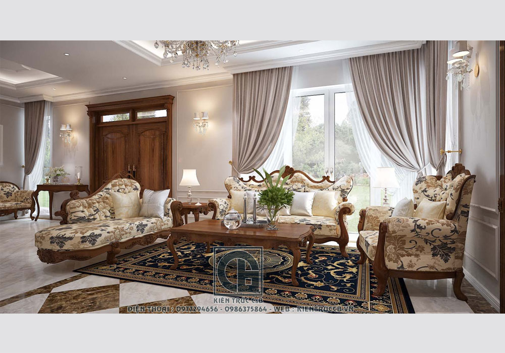 Với những món đồ chính như bàn ghế cửa phòng, cầu thang, KTS áp dụng phong cách cổ điển. Mỗi chi tiết trang trí đều được gia công tỉ mỉ, cẩn thận với các chi tiết hoa văn đẹp mắt, tinh xảo. Những đường cong uốn lượn mềm mại trên thành bàn, ghế hay chân ghế mang tính thẩm mỹ cao.