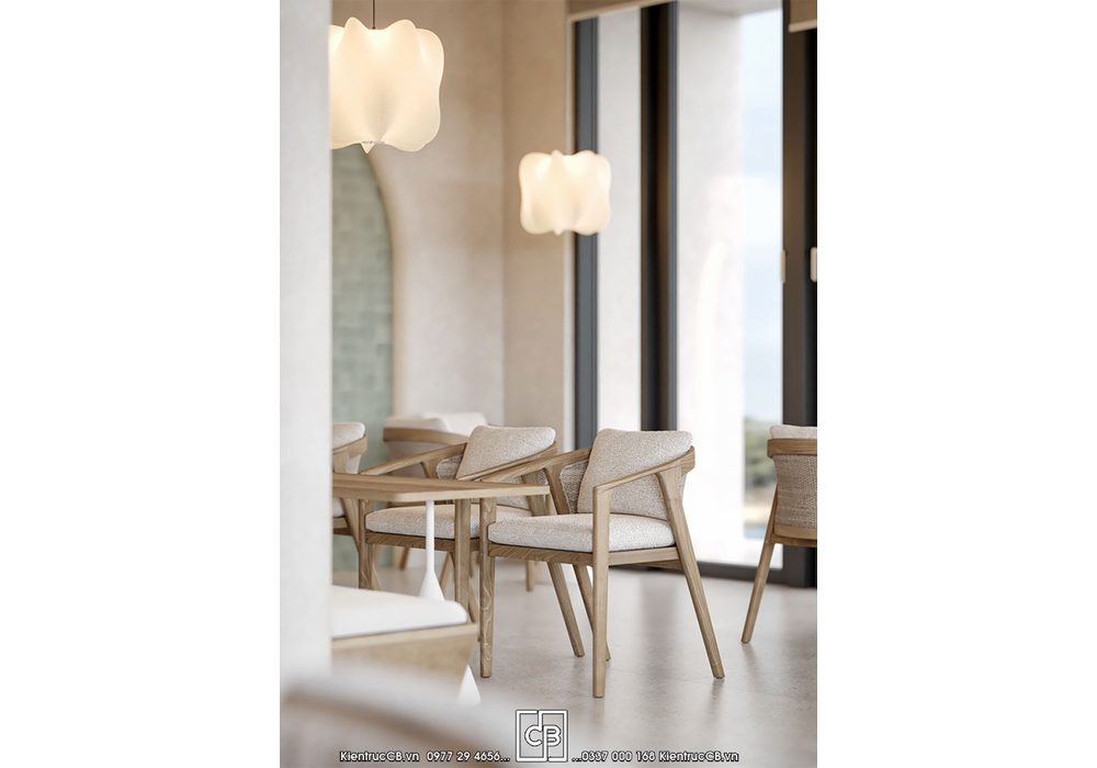 Tầng 2 của quán cafe được định hình như một “ốc đảo thư giãn” tách biệt khỏi sự ồn ào bên dưới. Thiết kế theo phong cách Organic – Soft Minimalism, không gian mang đến cảm giác nhẹ nhàng, tinh tế và cực kỳ dễ chịu.