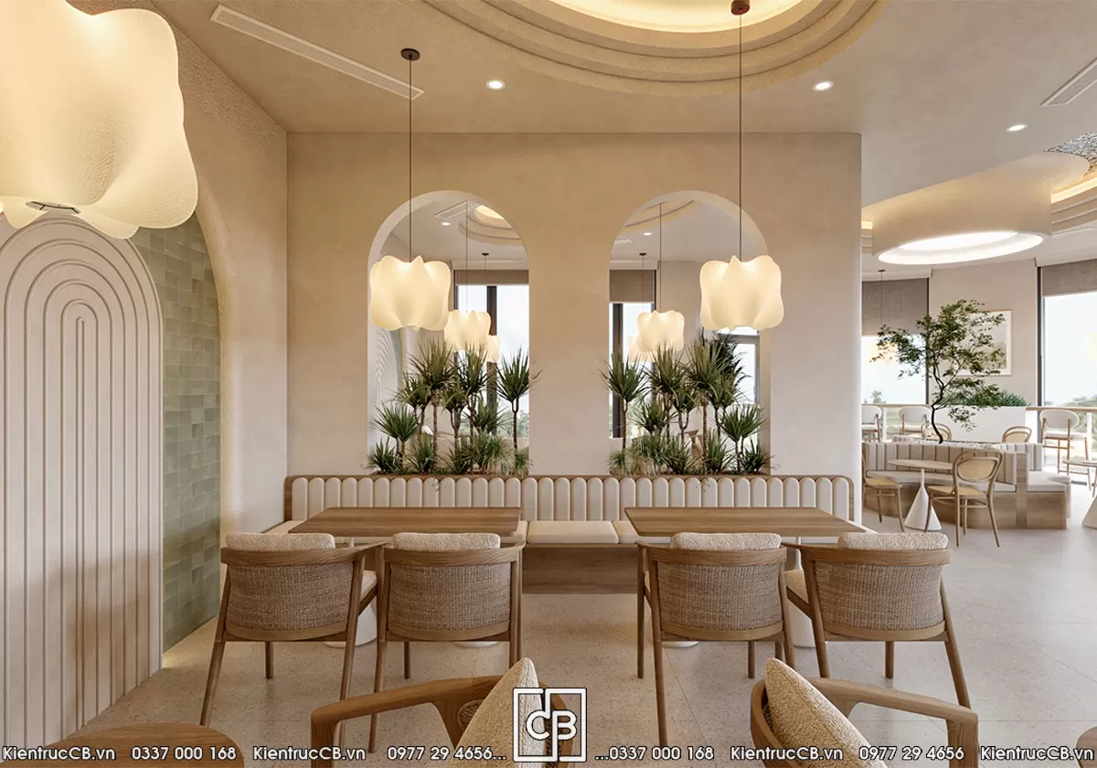Thiết kế tầng 2 không chỉ đơn thuần là mở rộng diện tích mà còn là nâng cấp trải nghiệm khách hàng. Với phong cách Organic hiện đại, không gian này trở thành điểm đến lý tưởng cho những ai tìm kiếm sự yên tĩnh và cảm xúc.
