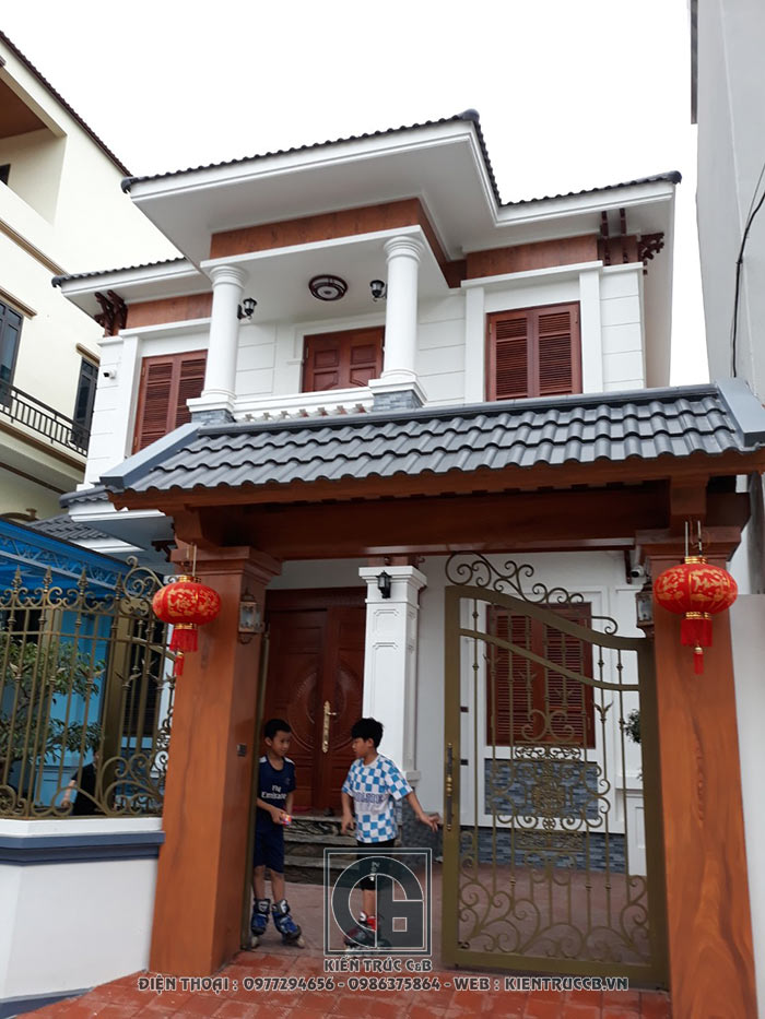 Mẫu biệt thự 2 tầng của gia đình anh Quỳnh - chị Thương đã hoàn thiện và được gia đình đưa vào sử dụng từ đầu năm 2021. Về cơ bản, mẫu nhà rất giống so với bản phối 3D mà chủ nhà đã duyệt trước đó. Phần cổng được gia chủ bố trí thêm mái che rất đẹp mắt và hợp lý, tôn thêm sự sang trọng của ngôi nhà.