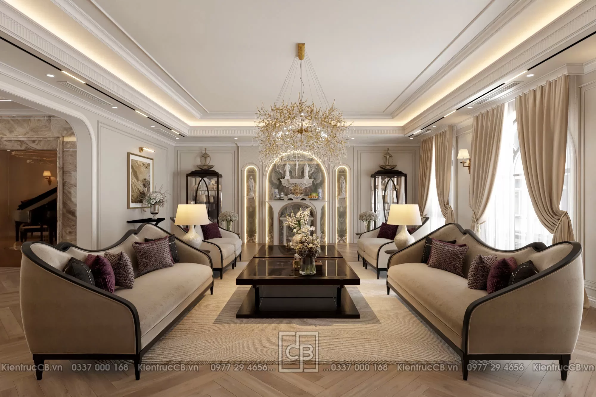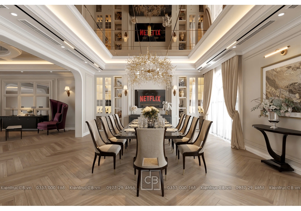 Giữa xu hướng tìm kiếm không gian sống đẳng cấp, phong cách nội thất tân cổ điển luxury ngày càng khẳng định vị thế nhờ vẻ đẹp tinh tế và giá trị vượt thời gian. Mẫu thiết kế nội thất biệt thự dưới đây là sự kết hợp hoàn hảo giữa đường nét cổ điển sang trọng và tiện nghi hiện đại, mang đến một tổng thể hài hòa, đậm chất thượng lưu. Không chỉ gây ấn tượng về thẩm mỹ, từng không gian còn được bố trí khoa học, tối ưu công năng, tạo nên trải nghiệm sống trọn vẹn cho gia chủ.