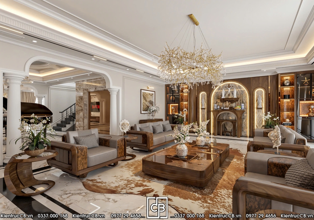 Nhìn chung, phòng khách không chỉ là nơi tiếp đón khách mà còn là không gian thể hiện gu thẩm mỹ và phong cách sống của gia chủ. Sự kết hợp giữa nội thất cao cấp, vật liệu sang trọng và bố cục hài hòa đã tạo nên một không gian sống đẳng cấp, tinh tế và đầy sức hút. ✨