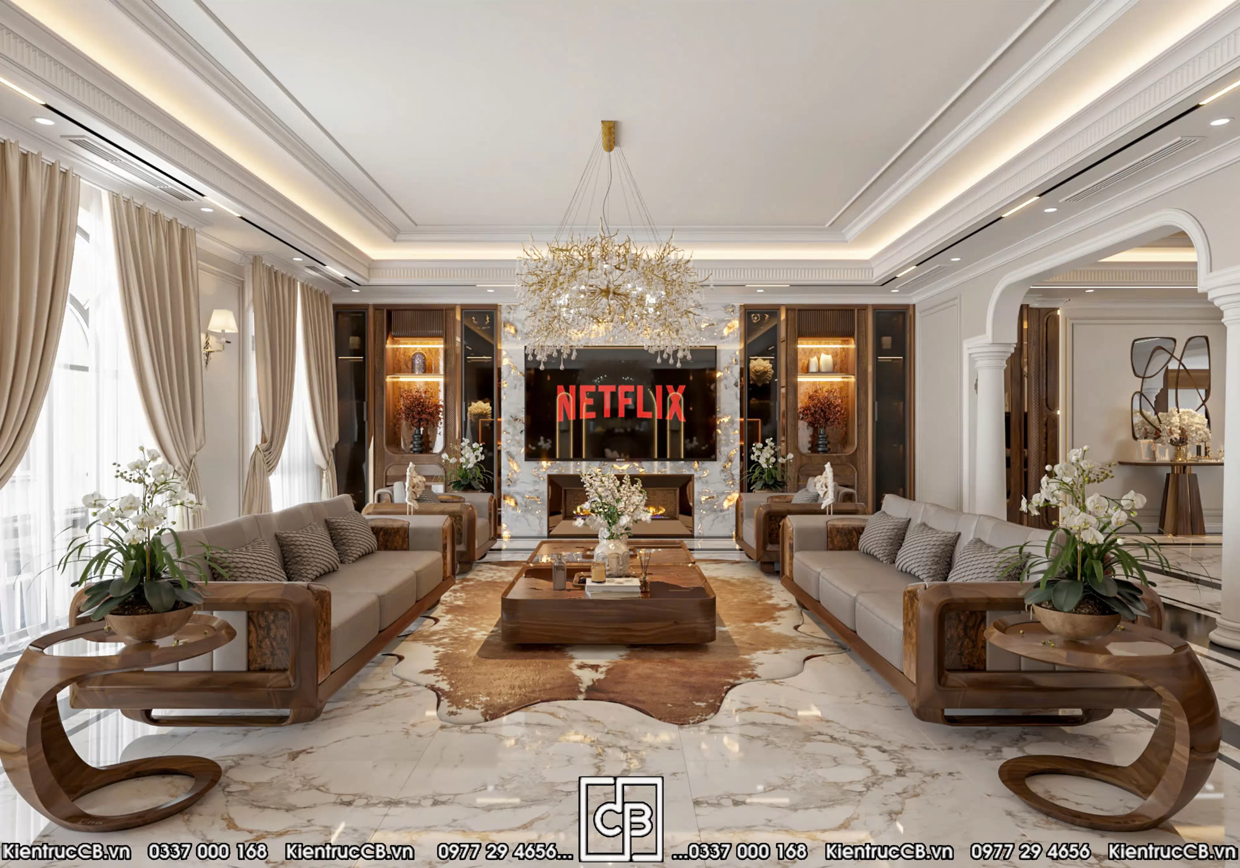 Không gian phòng khách luôn được xem là “trái tim” của ngôi nhà, nơi thể hiện rõ nhất gu thẩm mỹ và đẳng cấp của gia chủ. Với phong cách tân cổ điển, phòng khách không chỉ mang vẻ đẹp sang trọng mà còn